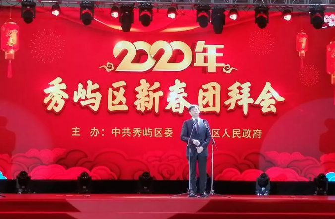 秀屿区委书记郑加清在2020秀屿区新春团拜会暨纳税表彰大会上发表新春致辞,区委副书记、区长张伯松宣读表彰决定,区领导为受表彰企业授牌。