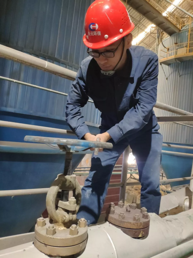 生产一线值班人员更换水池阀门开关
