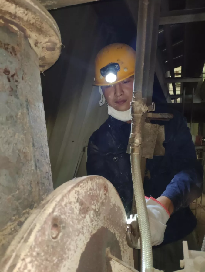 生产一线值班人员更换锅炉配件