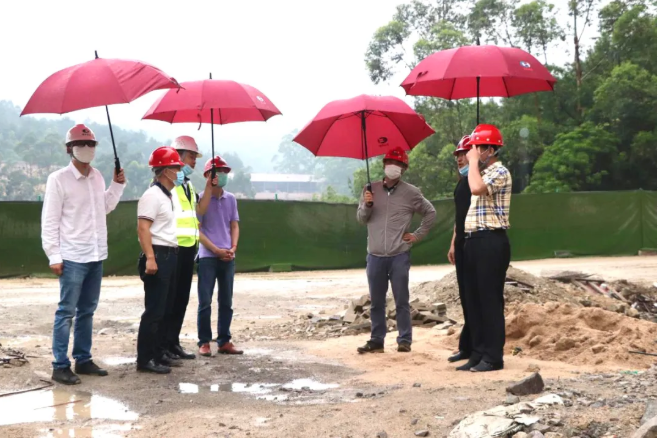 涂远承主任冒雨来到项目施工现场,不漏死角、不漏盲区详细察看并询问工程进度,了解工程建设中遇到的困难和问题。芒果体育副总经理、南安市垃圾焚烧发电厂提级改造工程项目总指挥汪云保就项目前期手续、工程建设等做了汇报。也提及在此过程中遇到的困难、投产后垃圾处理效能等。