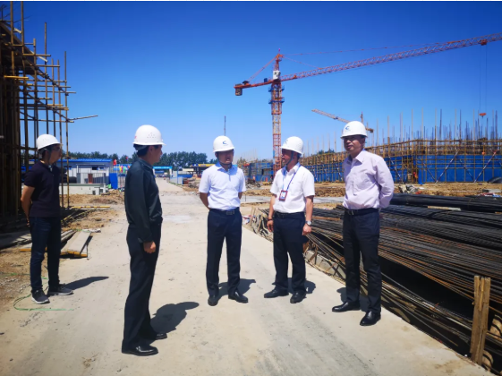 鲁副市长一行到达项目所在地后直奔项目推进现场,挖掘机、起重机等施工机械正在轰鸣作业,施工工人们顶着烈日挥汗奋战。官冬源总指挥就项目概况、项目建设进度、预计投产时间及配套飞灰填埋场和渣场手续办理等具体情况作了汇报。