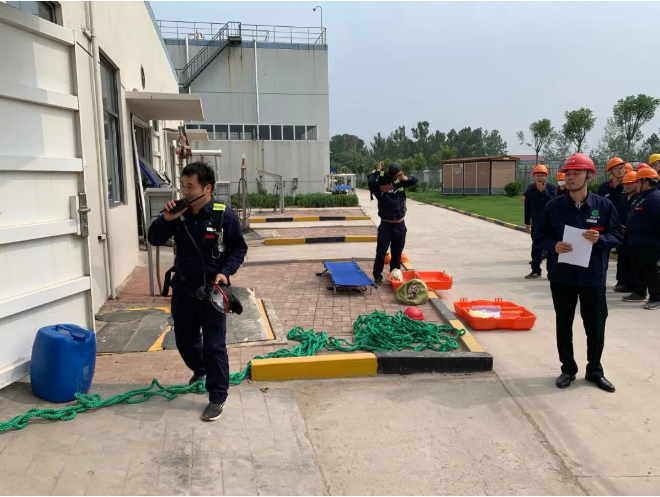 此次消防演练主要模拟员工在厌氧池下吸入有害气体中毒晕倒,随后展开救援、紧急撤离等一系列应急操作。