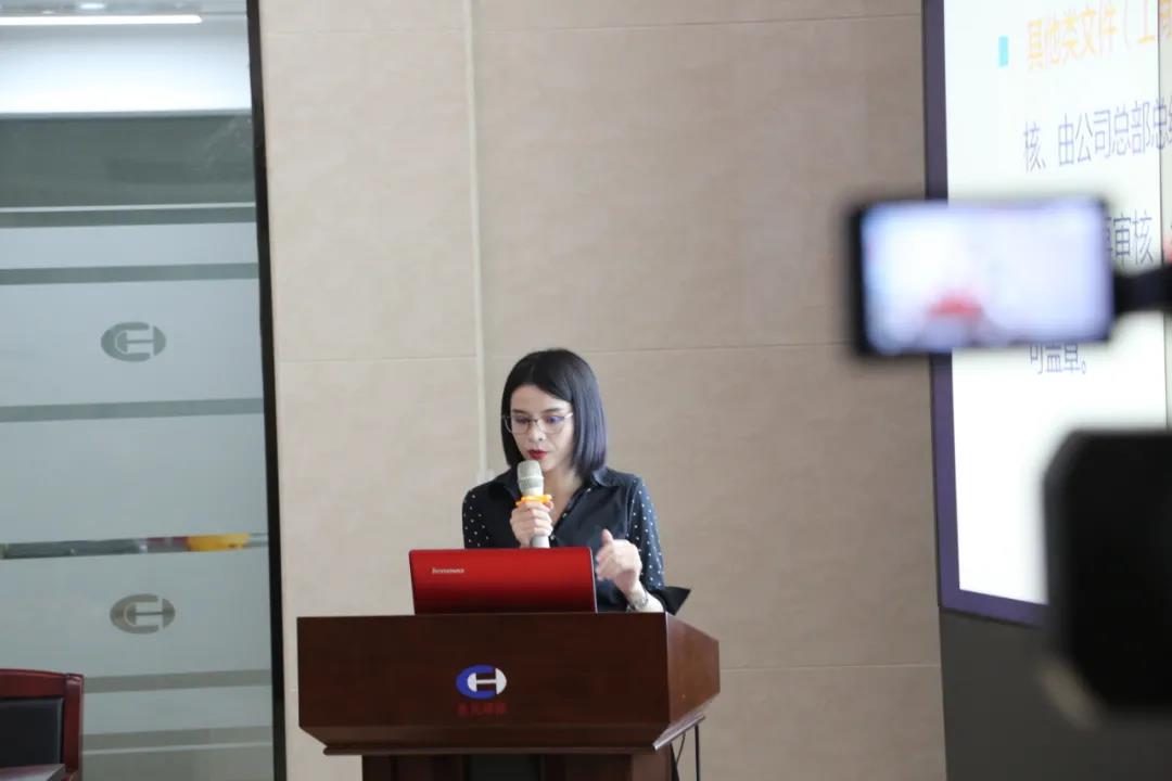 培训主要针对公司现行的《印章管理暂行规定》展开系统的学习宣贯。林婷婷结合现实案例,阐述公司印章的范围、管理及违规用章的责任,还重点讲解各类印章的刻制、使用审批流程、用印资料留底、保管责任、印章管理风险管控等方面的内容。