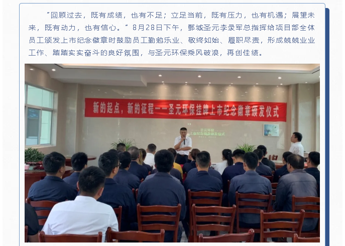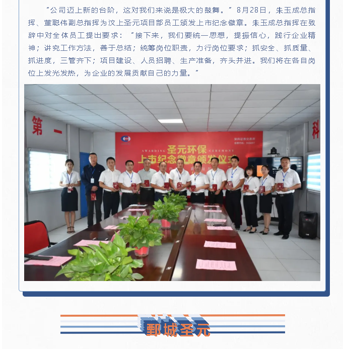 芒果体育旗下南安、漳州、郓城、庆阳、汶上、鄄城、梁山、龙海、旧镇厂给员工颁发上市纪念徽章