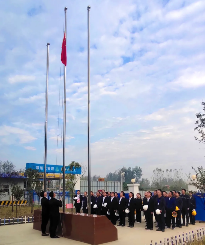 上午7点50分,70名员工齐聚国旗台下,举行庄严肃穆的升旗仪式。官冬源总指挥在国旗下讲话。他说,前段大多数员工分赴兄弟厂跟班学习收获很大。你们回来得正是时候,接下来不仅要学习,还要亲自参加建设活动。通过我们的双手,把这个美丽的现代化工厂建设起来、运行起来。现在正是抢工期、抢进度的时候,只要大家充分发扬奋勇拼搏、爱岗敬业的精神,项目部一定能全面完成任务。官冬源要求全体员工以主人翁姿态,拿出十二分干劲,肆意挥洒劳动的汗水,全力以赴、使命必达。