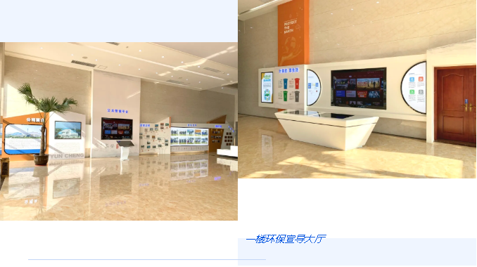 厂区办公楼的环保展厅,把环保科普、垃圾分类互动游戏、垃圾发电的优势、垃圾发电核心实力、五废达标控制及环保生活等几大板块串联起来,多层次表达环境保护这个大主题。