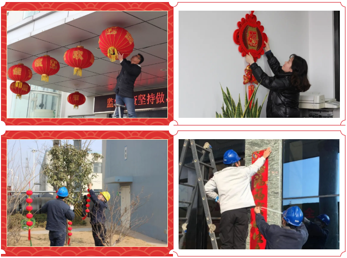 这边食堂准备得热热闹闹,那边员工们用双手将新春的红色妆点到工厂园区的各个角落。大大小小的红灯笼,将厂区点缀得分外喜庆和靓丽,处处呈现出迎新年、贺新春的热闹景象。