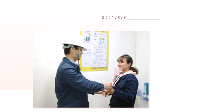 在插花活动的同时,南安芒果体育也有一批女性员工,因为工作需要,她们选择了坚守岗位,她们用履职为节日增光添彩。她们值得我们尊敬,坚守岗位的她们,同样收到了公司的鲜花和祝福。