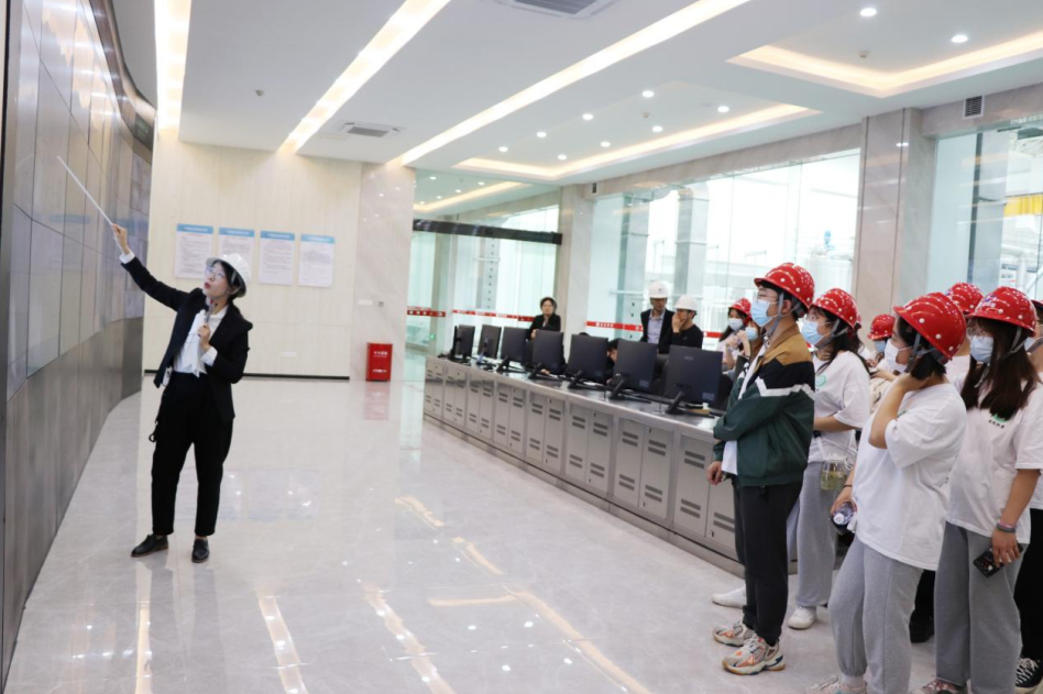 随后,同学们前往餐厨垃圾资源化处理项目,通过参观环保展厅和中央控制室,全面了解项目运作模式、处理工艺和处理规模。对于项目采用的“餐厨垃圾预处理+有机浆料厌氧发酵+沼气发电”的处理工艺,同学们兴趣浓厚,积极与工作人员探讨。
