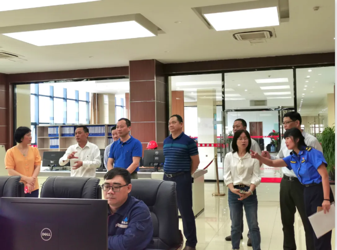来到绿意盎然的漳州芒果体育,调研组一行观看公司宣传视频,实地察看中控室、垃圾吊控制室等区域。在参观通道近距离察看汽机运行机组时,领导们仔细询问日发电量、日进厂量和日入炉垃圾量及吨垃圾发电量等情况。调研组还听取了杨宏湘总监等相关负责人关于生产运行情况的汇报。