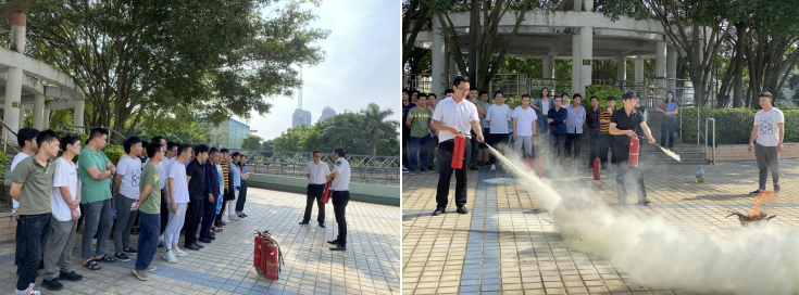 课上,讲师详细讲解消防安全应急操作与火场逃生技巧,并现场演练如何使用干粉灭火器进行灭火,从而做到在面对火情时,正确报警、扑救、疏散、自救和逃生,确保员工生命安全及厂区财产安全。此次活动,宝洲污水处理厂员工积极参与,不仅学习了专业的消防安全知识,而且通过模拟现场环境演练,总结训练经验,有效提升参演人员实战水平,增强快速果断处理突发事件能力。