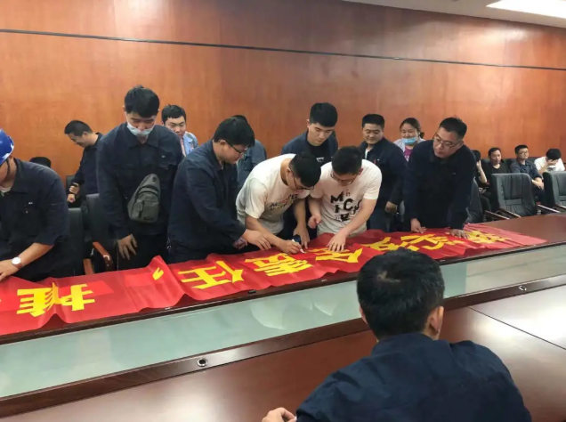 活动最后,曹县芒果体育全体员工踊跃在印有安全月活动主题字样的鲜红条幅上签名,以实际行动表明全员参与,提高安全意识,遵章守纪从我做起的信心与决心。