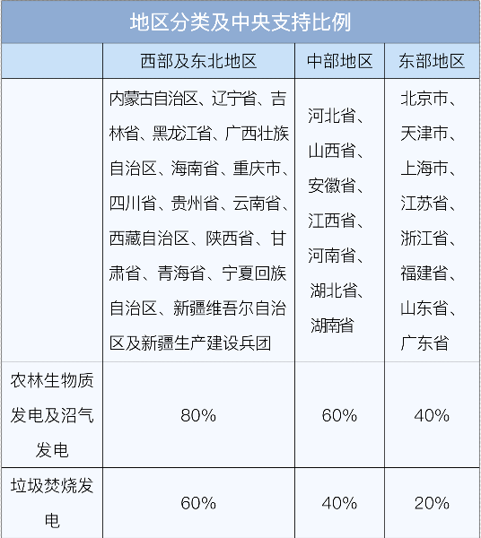 4、区别对待,分类管理。为兼具公平和灵活性,客观、务实、合理分配年度新增项目补贴,实施方案在三个层面对生物质发电项目进行了分类管理。1)补贴项目分类管理:分为非竞争性项目和竞争性项目。2)竞争配置分类管理:在竞争性项目中,考虑到不同类别项目发电成本差异较大,又分为农林生物质发电类项目(含沼气发电)和生活垃圾发电类项目。3)央地分担分类管理:在央地分担层面,考虑到不同地域经济发展差异,把全国分为西部(含东北)地区,中部地区和东部地区。