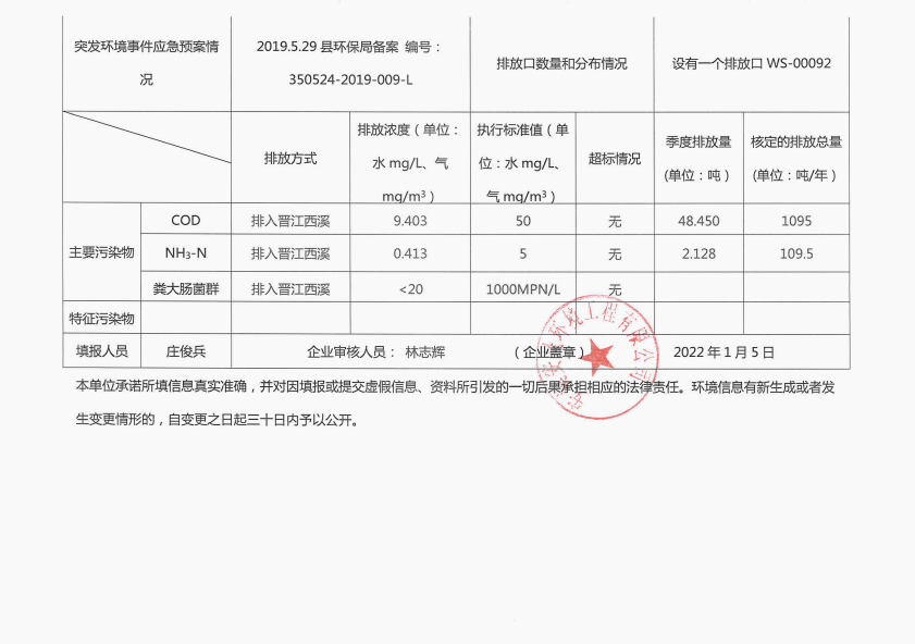 安溪城市污水处理厂2021年第4季度环境信息公开