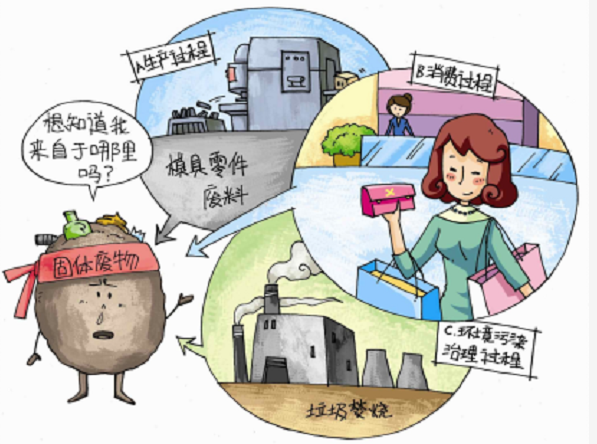 固体废物主要来源于人类的生产、消费和环境污染治理过程。人们在开发资源、制造产品的过程中必然产生废物;任何产品经过使用和消耗后,最终也都将变成废物。