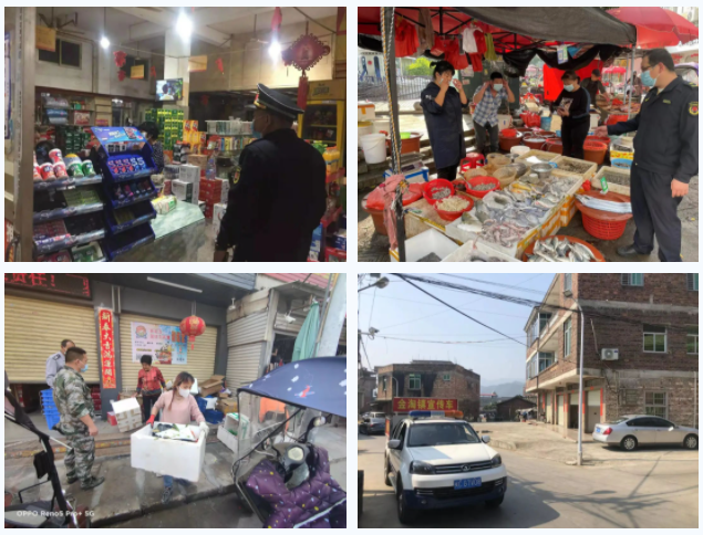各派驻执法中队对各商铺、摊点等进行疫情防控宣传,要求经营者严格落实疫情防控措施,督促不聚集、戴口罩、三码联查、测体温,开展卫生整治及环境消杀。