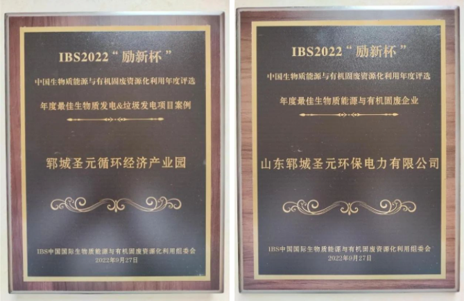 2022年9月27-28日,中国第十届生物质能源与有机固废资源化利用高峰论坛在杭州举行。颁奖晚宴上,郓城芒果体育获颁IBS2022励新杯“年度最佳生物质发电&垃圾发电项目”及“年度最佳生物质能源与有机固废企业”两项荣誉。