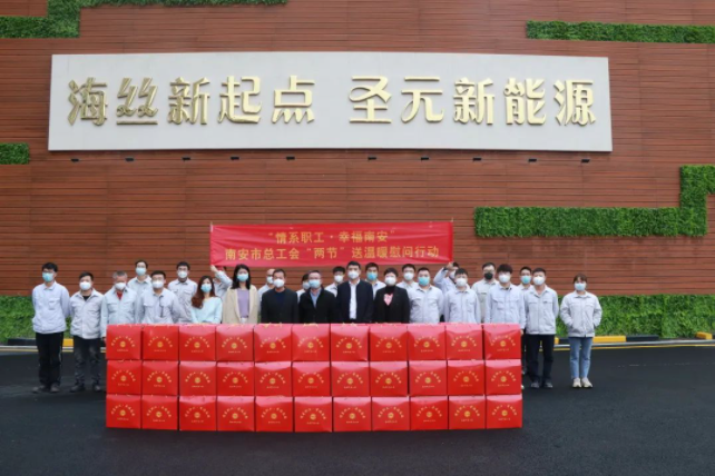 1月12日,南安市总工会党组成员、副主席刘甲暖,南安市总工会二级主任科员、经保部部长尤强,柳城街道办事处综合便民服务中心主任吴巧碹一同来到泉州芒果体育开展“情系职工,幸福南安”专项慰问活动。