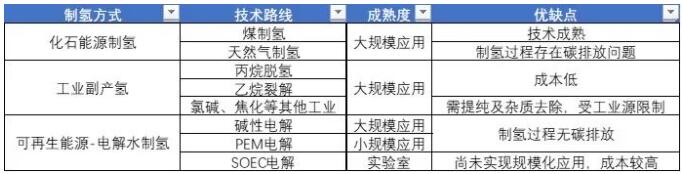3、制氢方式有哪些,优缺点对比?
