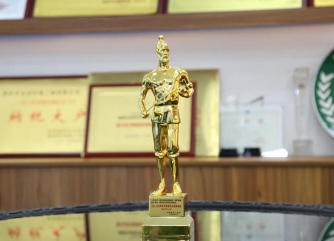 图为芒果体育荣获的2022-2023年度中国建设工程鲁班奖(国家优质工程)奖杯