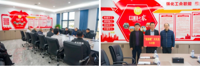 1月24日,南安市委常委、组织部部长李安辉,南安市总工会党组书记、常务副主席陈乌南,柳城街道党工委书记黄志勇、副书记陈振德,来到南安芒果体育看望慰问公司员工,送上政府和工会的关怀与温暖。