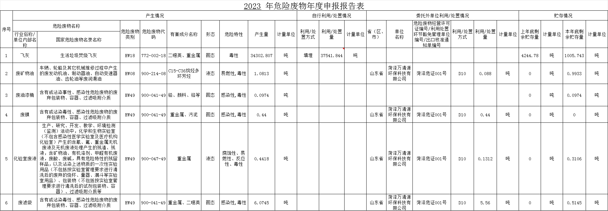 郓城芒果体育危废信息公示