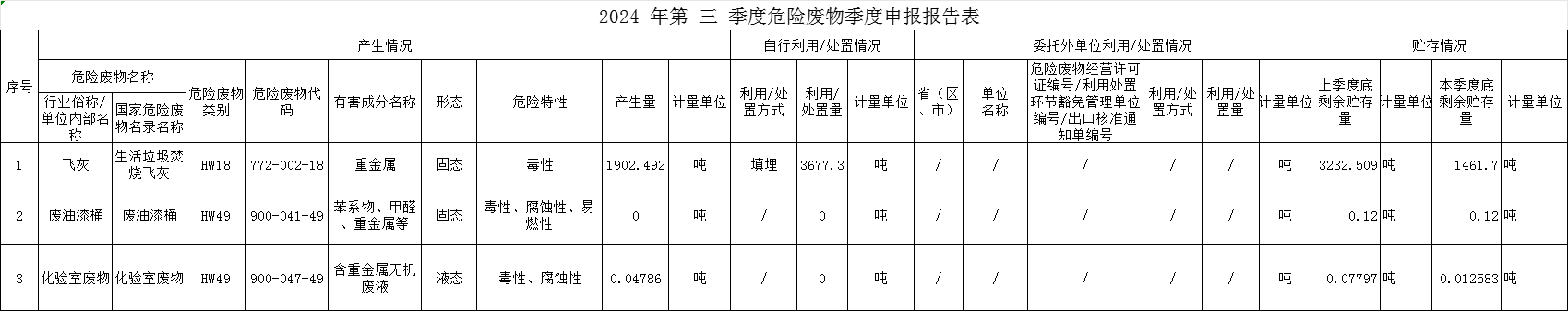 鄄城芒果体育第三季度危险废物污染防治信息公示