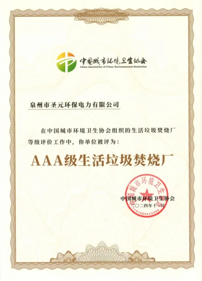 日前,泉州市芒果体育电力有限公司顺利通过中国城市环境卫生协会组织的生活垃圾焚烧厂无害化等级评定,获评国家AAA级生活垃圾焚烧厂。AAA级代表全国生活垃圾处理设施无害化最高等级,标志着泉州芒果体育生活垃圾无害化处理已达到国内领先水平。