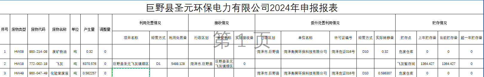 巨野县芒果体育危废信息公示