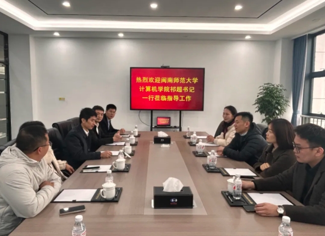 2月8日,闽南师范大学计算机学院党委书记祁超一行到南安芒果体育参观调研,圣泽工会主席赵慰亭、南安芒果体育运营副总监杨煌坤陪同。