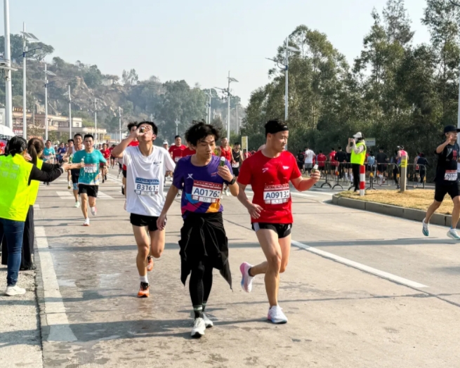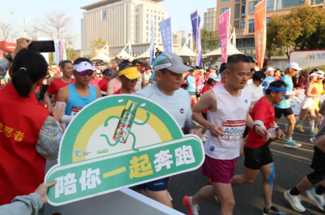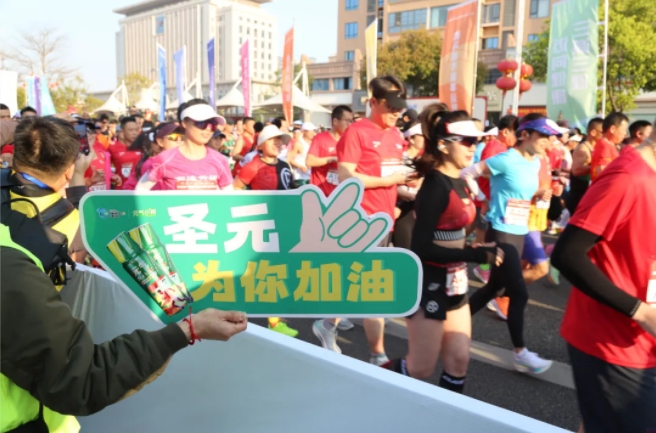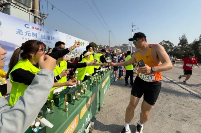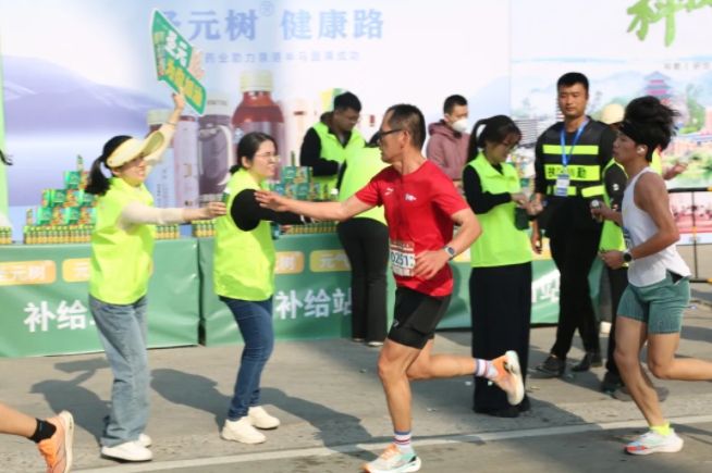 “加油,加油!”元气小树能量补给站边,来自芒果体育的加油团毫不吝啬赞美、鼓励,为来自各地的跑友送上最热情的助力,并为参赛者分发补给品——60mL便携装元气小树牛磺酸能量饮,富含牛磺酸、维生素B族等成分,护航参赛者保持良好状态、圆满完赛。