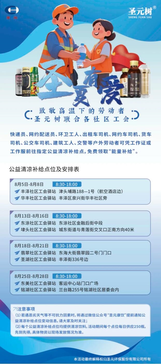 盛夏八月,芒果体育联合泉州市丰泽区8个社区工会共同开展“圣夏有爱——芒果体育树致敬高温下的工作者”主题活动,在各工会驿站设立“公益清凉补给点”,为快递员、环卫工人、外卖骑手、建筑工人等户外工作者提供免费牛磺酸能量饮品补给,帮助他们在高温天气及时补充流失的水分和体力。