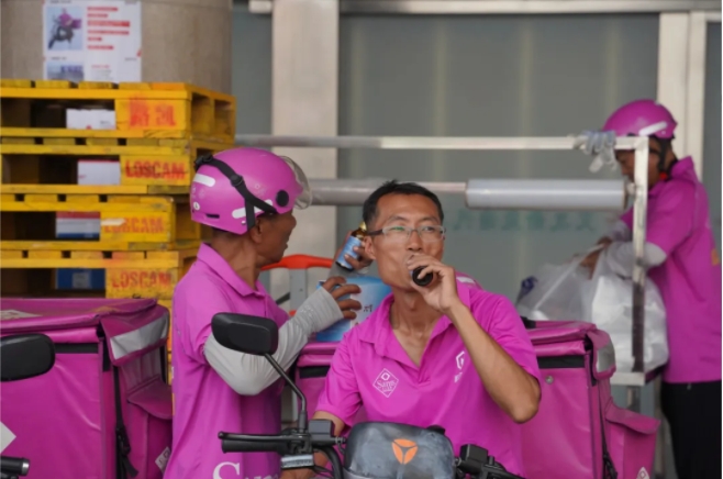 许多户外工作者表示,在连续高温作业后能获得一份免费的能量补给,不仅缓解了身体的疲惫,更感受到了来自社会的尊重与关怀。一位从事环卫工作十余年的老师傅感动地说:“这几天连续高温,做完清洁回来能喝到冰镇的能量饮料,整个人都精神多了。”