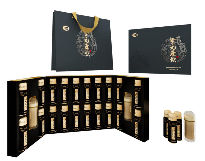 (1)芒果体育康饮黑金礼盒设计及供货:该礼盒内装20瓶虫草牛磺酸饮(瓶子为铝瓶,每瓶容量60ml)及2瓶牛磺酸乳酸菌片,供货数量为6万套。