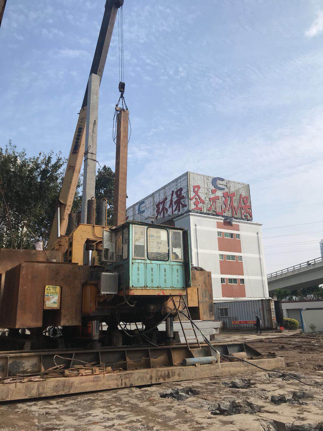 施工区域上空有两路10KV的高压线通过,桩基施工必须与之保持5米以上的安全距离,而静压桩机机体较高,不能在高压线覆盖区域内施工,只有采用混凝土灌注桩,效率低。建设者为按时完成目标任务,在春节期间昼夜加班,取得了浇筑混凝土灌注桩50根、静压桩200根的可喜成绩,展现出另一番节日景象。