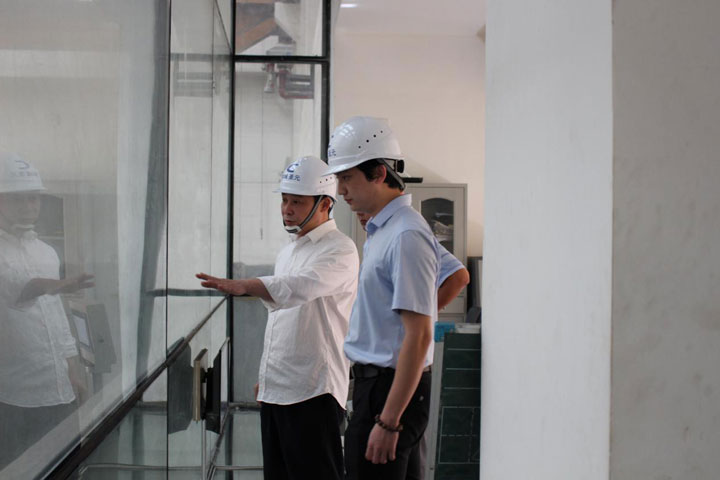 2018年5月14日下午,朱恒冰副总经理到郓城芒果体育检查工作。郓城芒果体育总经理曾勇,副总经理王鹏陪同。朱恒冰副总经理对郓城厂的垃圾吊操作室、参观走廊、生产现场、渗滤液处理站、渗滤液收集池进行了全面检查。