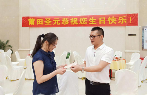 莆田芒果体育总经理李仁为寿星送上亲手写的生日贺卡