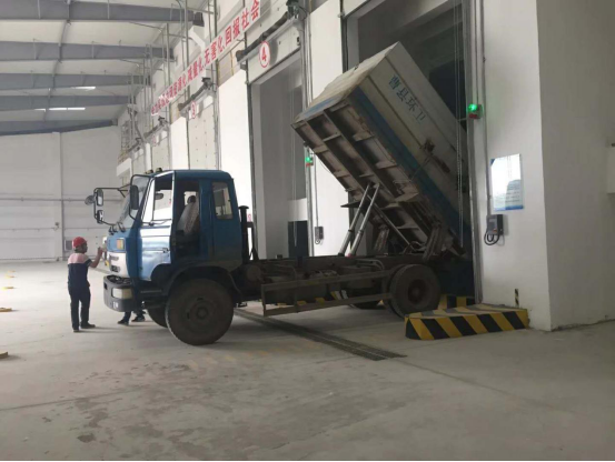 垃圾车进行卸料作业
