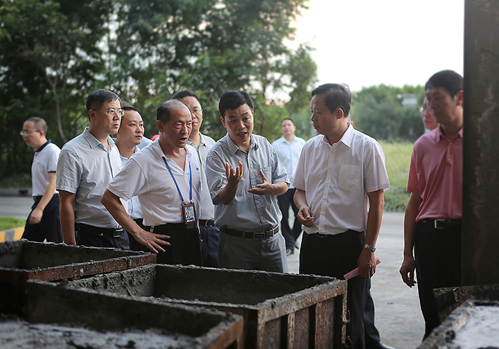 图为郑瑞锦副市长一行调研生产现场