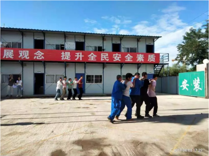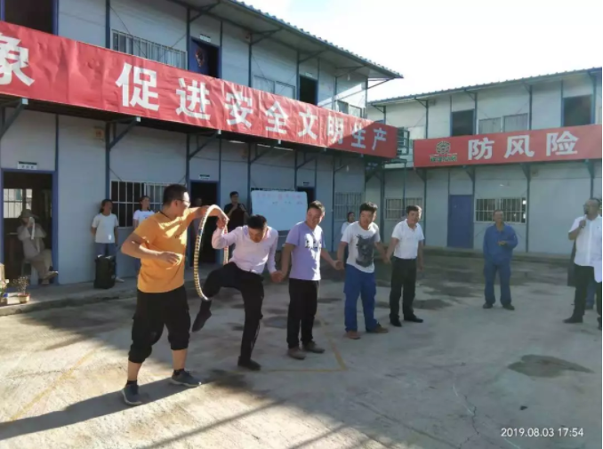 庆阳项目总经理叶红侠、副总指挥许新坪、监理单位龚祥忠、福建省安项目经理林强等领导出席本次活动,项目部所有员工及各参建单位代表参与本次活动。活动共设八个环节,既有展示团队步调一致、相互配合的“兄弟同心”、“心心相印”,也有考验成员细心和耐心的“众志成渠”、“投其所好”,更有表现彼此信任、互相照顾的“群龙取水”、“环环相扣”、“凌波微步”等。