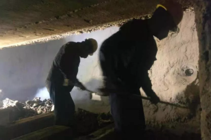 在高强度的清灰工作现场,清灰人员的身上、脸上满是汗水与灰尘,但他们不怕吃苦,勇敢敬业,毫不退缩。